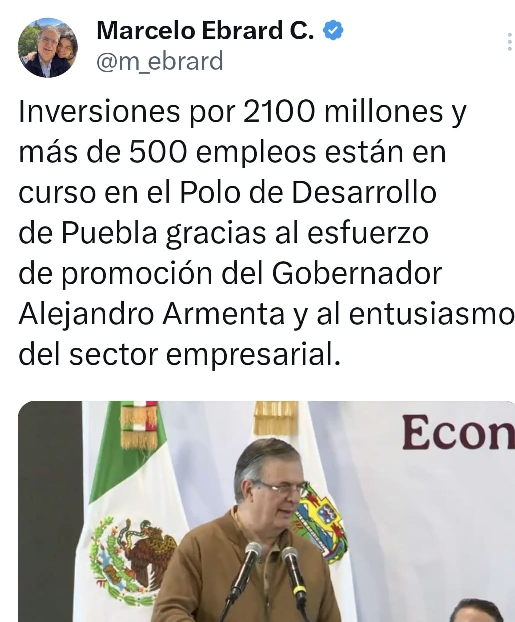 El secretario de Economía federal, Marcelo Ebrard, y el gobernador Alejandro Armenta, presentaron ante empresarios poblanos el modelo de Polos de Desarrollo Económico para el Bienestar, como parte del Plan México impulsado por la presidenta Claudia Sheinbaum.