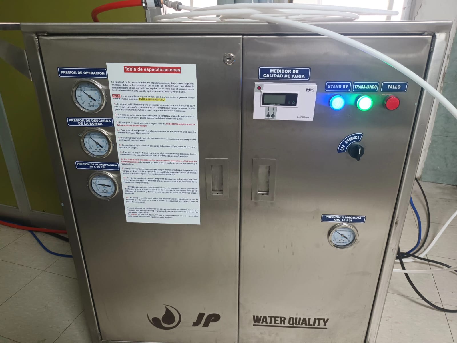 “La ventaja fue que al paciente se le trasladó a un área donde podíamos tener esa conexión, y entonces ya pudimos utilizar esa planta de tratamiento portátil. (…) Esta máquina nos ayuda a tener agua funcional. A diferencia de las plantas fijas, ésta tiene filtro y cartuchos especiales, se tienen que estar reabasteciendo y contabilizando la cantidad de tratamientos que se realizan”, especificó.