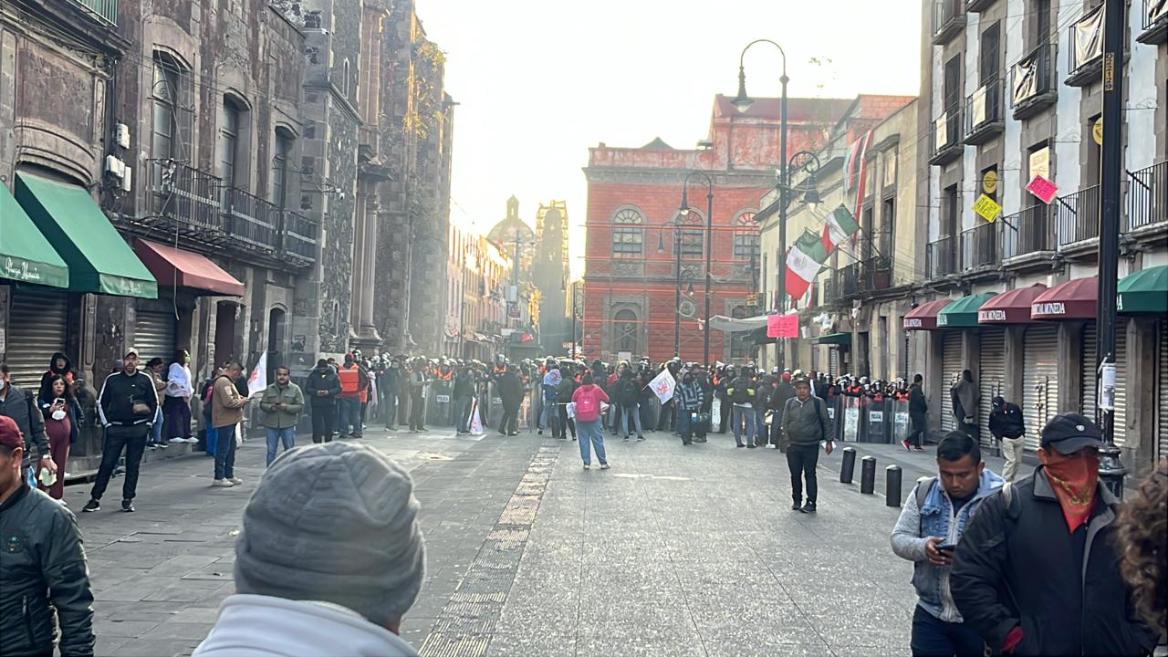 Más tarde, integrantes de la CNTE arribaron a la zona del Zócalo capitalino, donde intentaron derribar las vallas colocadas en torno al Palacio Nacional, sede del Gobierno Federal. Según se informó, uno de los objetivos del magisterio disidente era impedir la realización de la conferencia matutina.