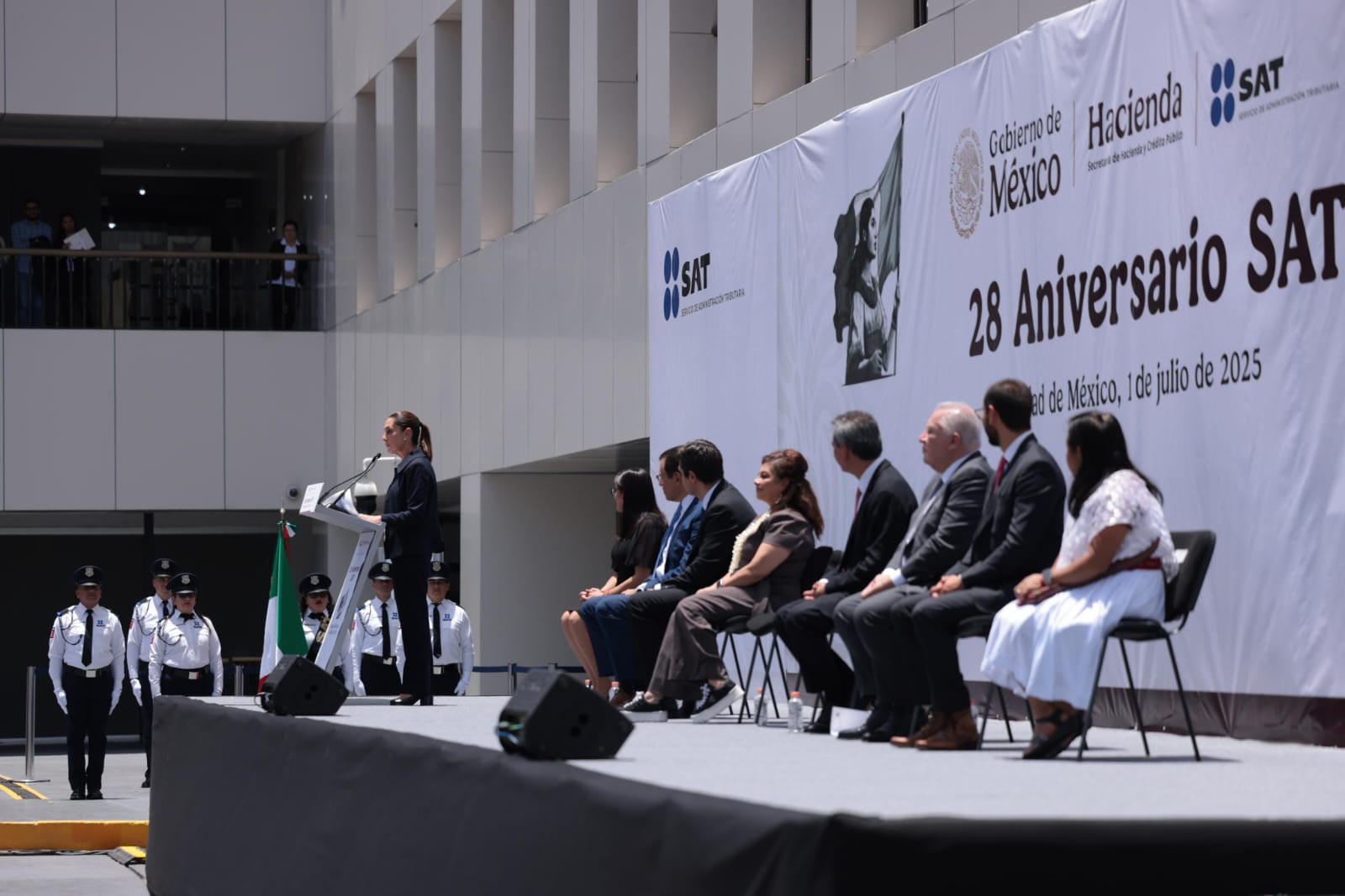 La presidenta de México, Claudia Sheinbaum Pardo, participó en la ceremonia conmemorativa por el 28 aniversario del Servicio de Administración Tributaria (SAT), donde destacó el papel fundamental de esta institución para el funcionamiento del Estado y la construcción de un país con justicia social.