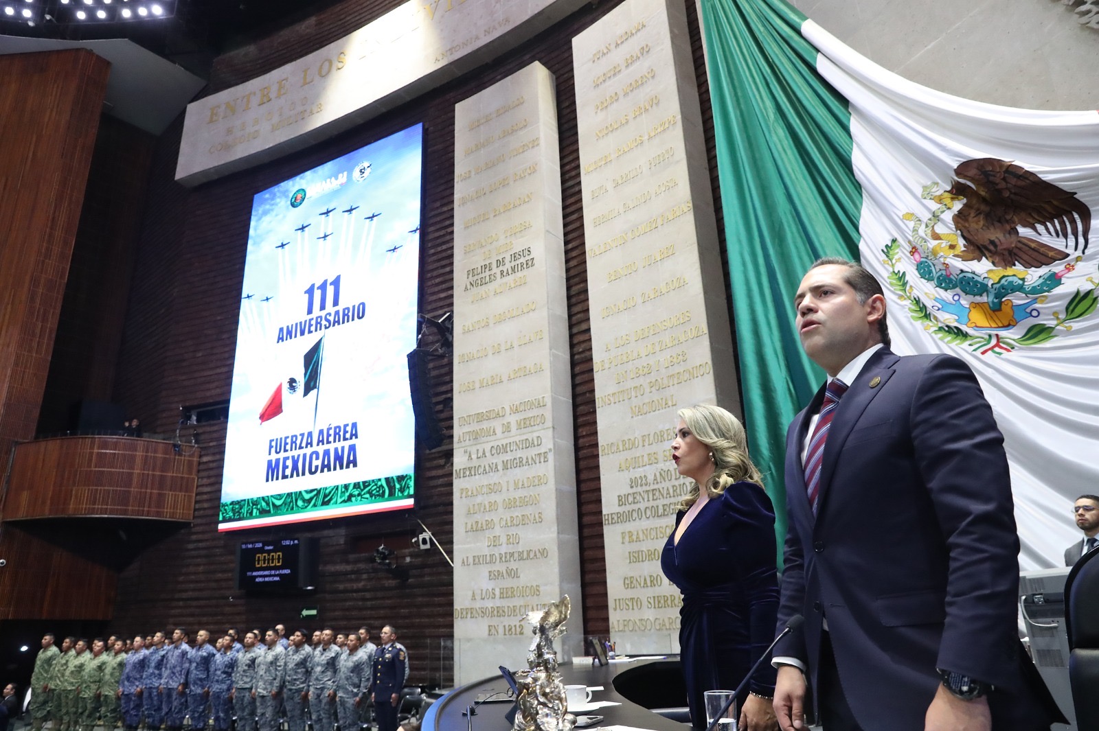 Este martes, la Cámara de Diputados realizó una sesión solemne en conmemoración del 111 aniversario del Día de la Fuerza Aérea Mexicana.
