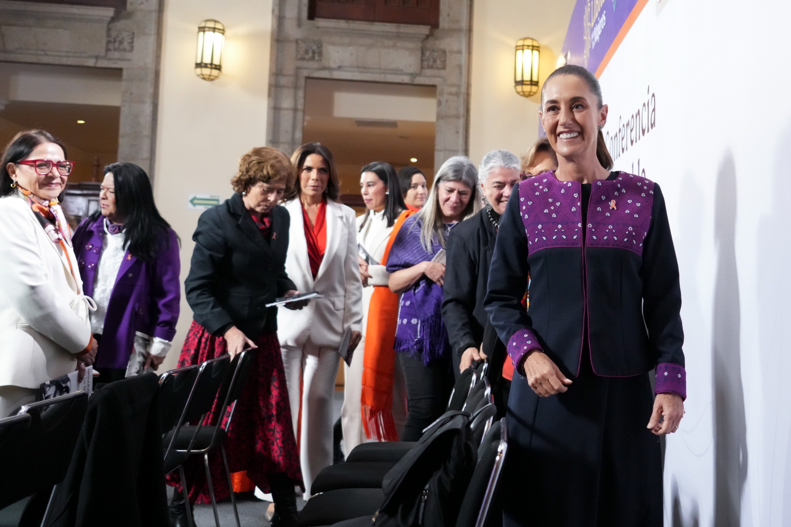 La Jefa del Ejecutivo federal estuvo acompañada por el Secretario de Relaciones Exteriores, Juan Ramón de la Fuente; la Subsecretaria para América Latina y el Caribe de la SRE, Raquel Serur Smeke; y el Jefe de la Oficina de la Presidencia de la República, Lázaro Cárdenas Batel.