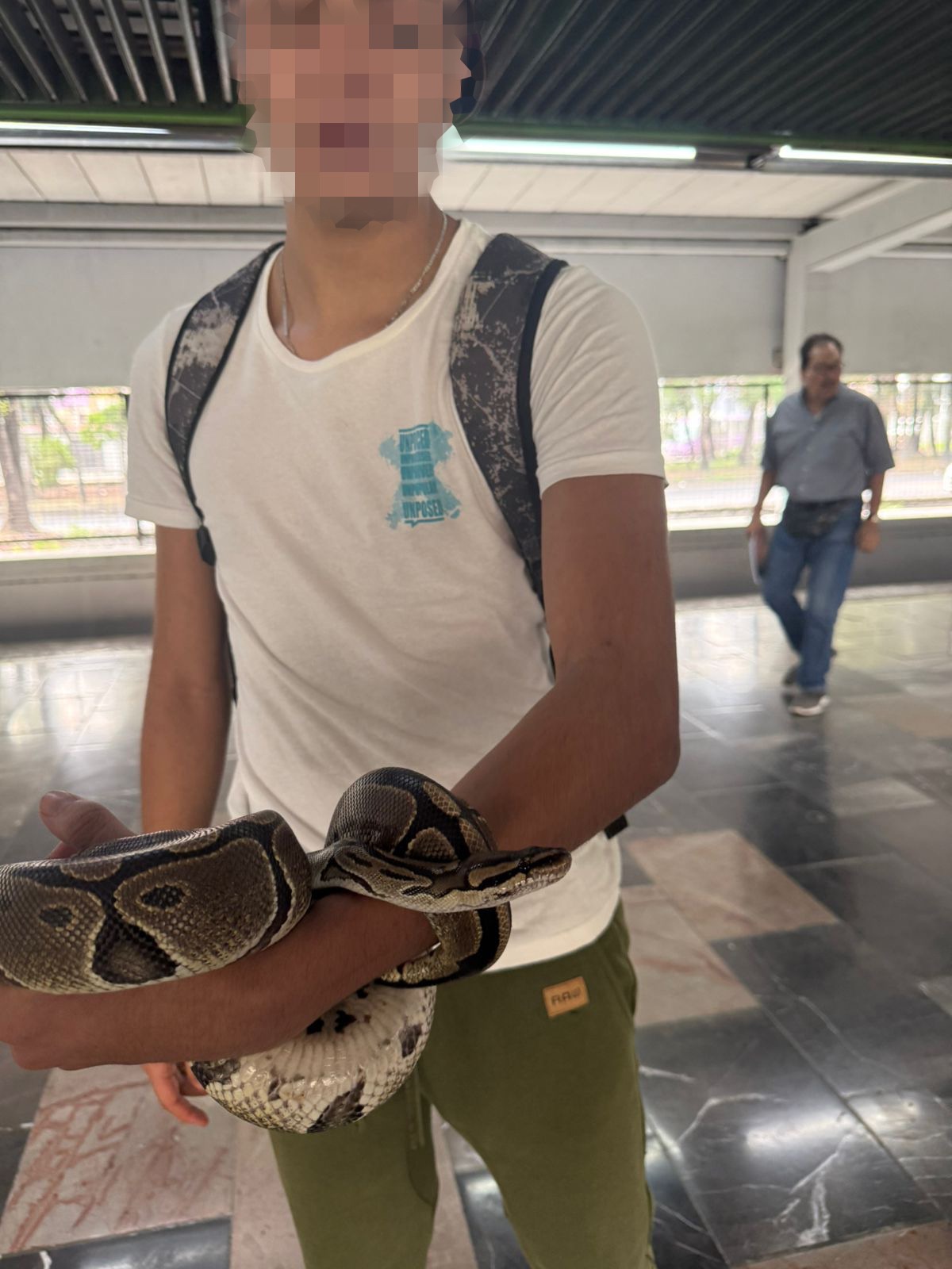 El Sistema de Transporte Colectivo Metro informó que personal de seguridad asignado a la estación Potrero de la Línea 3 detectó a un masculino que portaba una serpiente en la zona de torniquetes de la estación.
