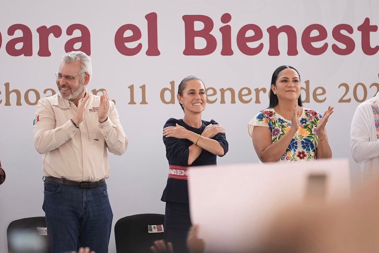 La mandataria recordó que tras 36 años de gobiernos neoliberales, la Cuarta Transformación logró sacar de la pobreza a 13.5 millones de personas, gracias al aumento de 150 por ciento del salario mínimo y a los Programas para el Bienestar, que en 2026 contarán con un presupuesto histórico de un billón de pesos. Añadió que en el Segundo Piso de la Cuarta Transformación se incorporaron tres nuevos programas sociales: Pensión Mujeres Bienestar, Beca Rita Cetina y Salud Casa por Casa, además de destacar la Beca Gertrudis Bocanegra, exclusiva para Michoacán, que beneficia a más de 50 mil estudiantes universitarios.