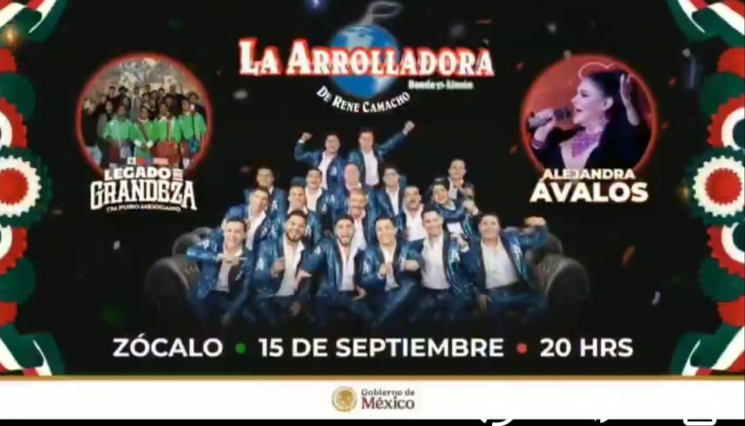 Durante su conferencia matutina en Palacio Nacional, la mandataria mostró un video para dar a conocer la sorpresa musical. Además de La Arrolladora, se presentarán la cantante y actriz Alejandra Ávalos y el colectivo Legado de Grandeza, intérprete del Himno Migrante. Los conciertos comenzarán a las 20:00 horas.