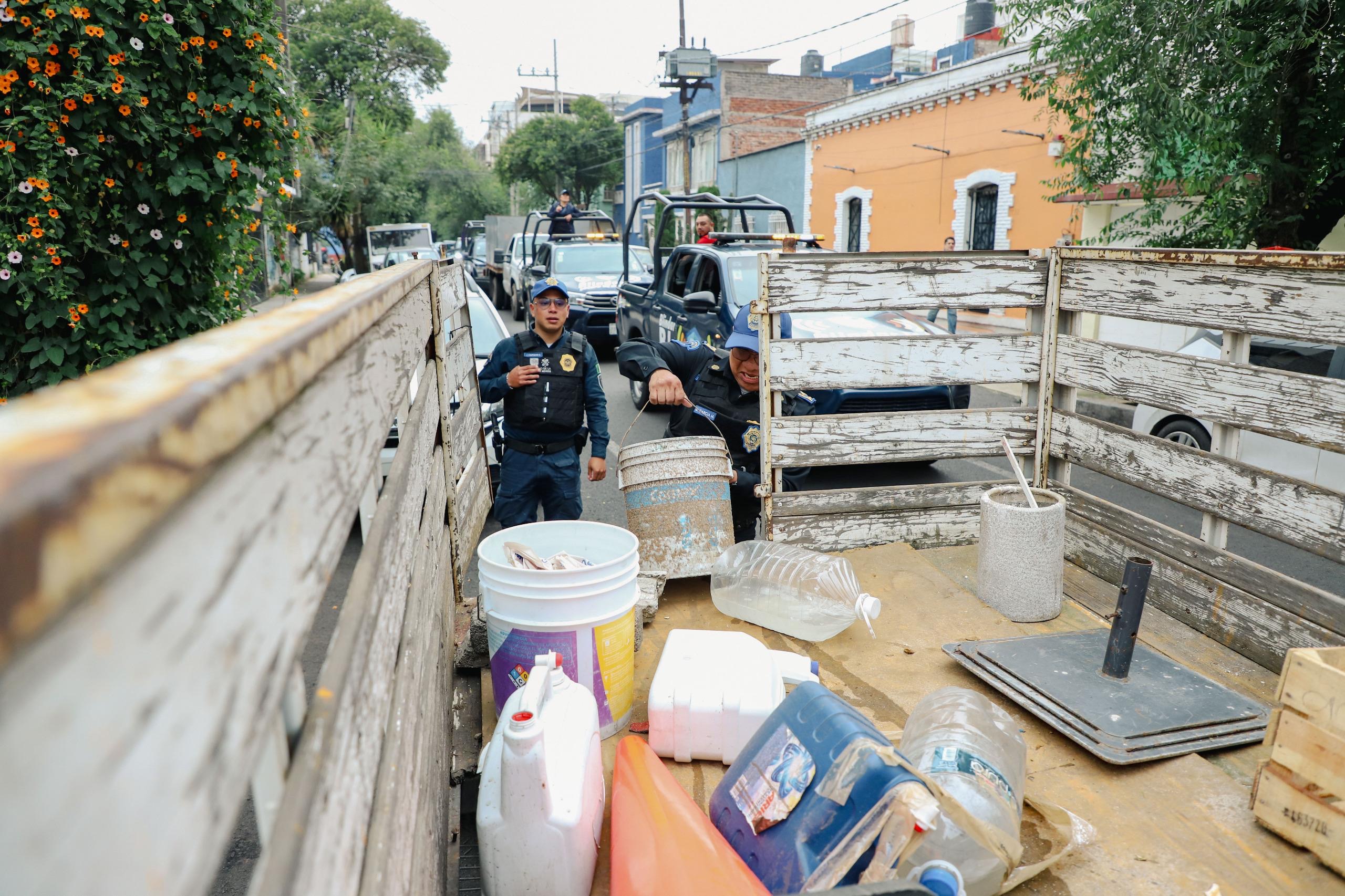 Durante un operativo realizado a través de la Dirección General de Seguridad Ciudadana y Prevención del Delito, en coordinación con elementos de Blindar BJ 360º, se intervinieron las colonias Nápoles, Portales Oriente, Albert, Moderna y Zacahuitzco, donde fueron retirados diversos obstáculos como bases metálicas, botes, llantas y estructuras que impedían el libre tránsito de peatones y vehículos.