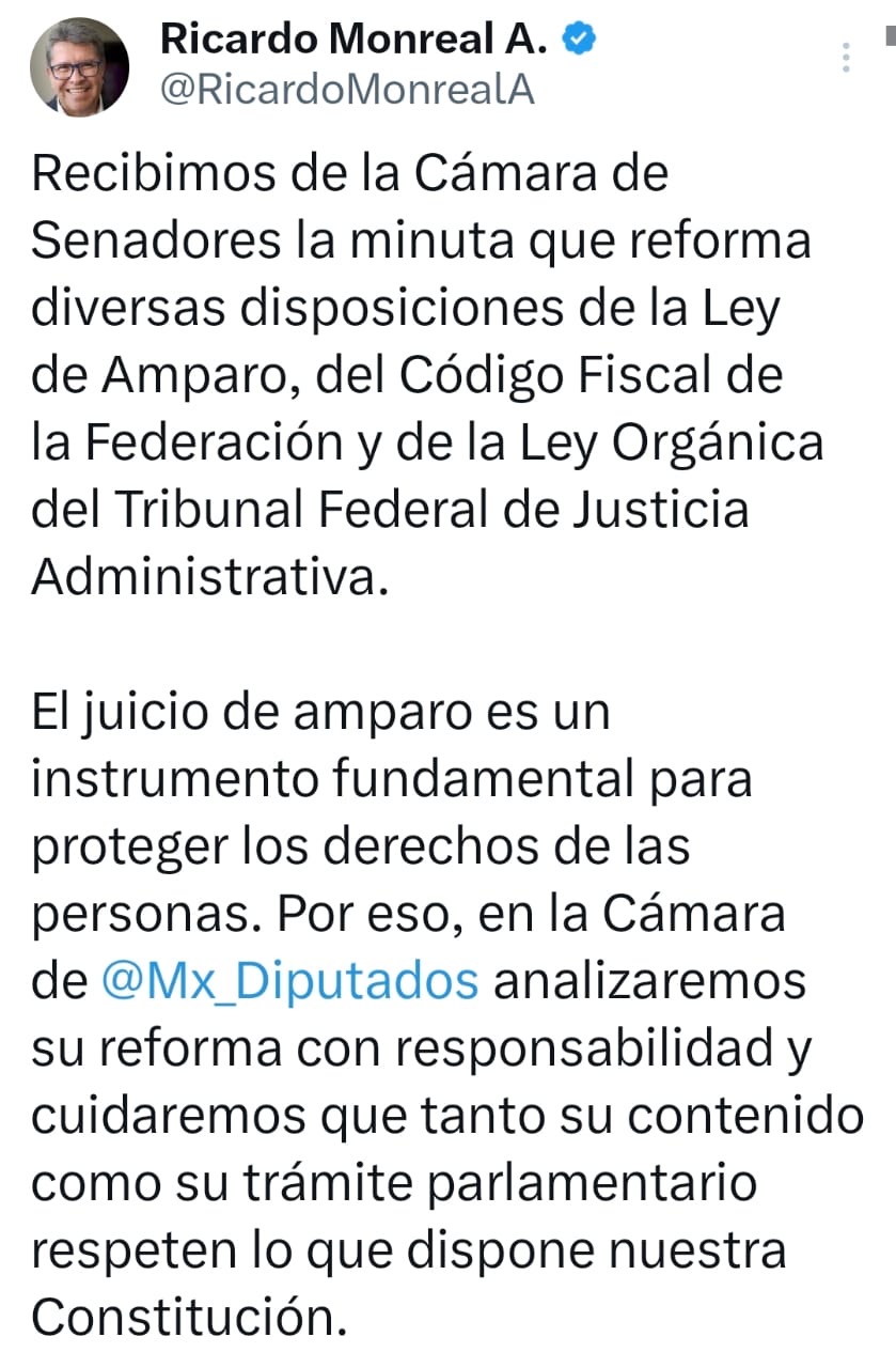 El coordinador de la bancada de Morena en la Cámara de Diputados, Ricardo Monreal, aseguró que en la revisión de la minuta de reforma a la Ley de Amparo se vigilará que no se aprueben disposiciones con efectos retroactivos, pues ello contravendría el artículo 14 constitucional.