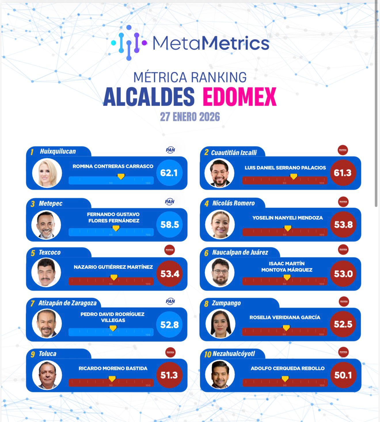 Las mediciones lo sitúan además como el alcalde de Morena con mejor aprobación en su región, con base en evaluaciones realizadas por firmas independientes al partido.