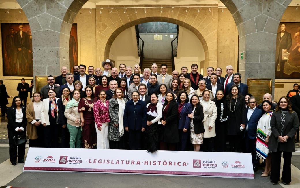 Reconoció el trabajo del grupo parlamentario de Morena en el Senado para impulsar reformas en materia de Guardia Nacional, simplificación administrativa, apoyo a jóvenes, protección de maíces nativos, salud, seguridad pública, prisión preventiva oficiosa, protección animal, vivienda para personas trabajadoras, bienestar, sectores estratégicos, sistema ferroviario, pueblos indígenas y afromexicanos, Poder Judicial, combate a la extorsión y fortalecimiento de la soberanía nacional.