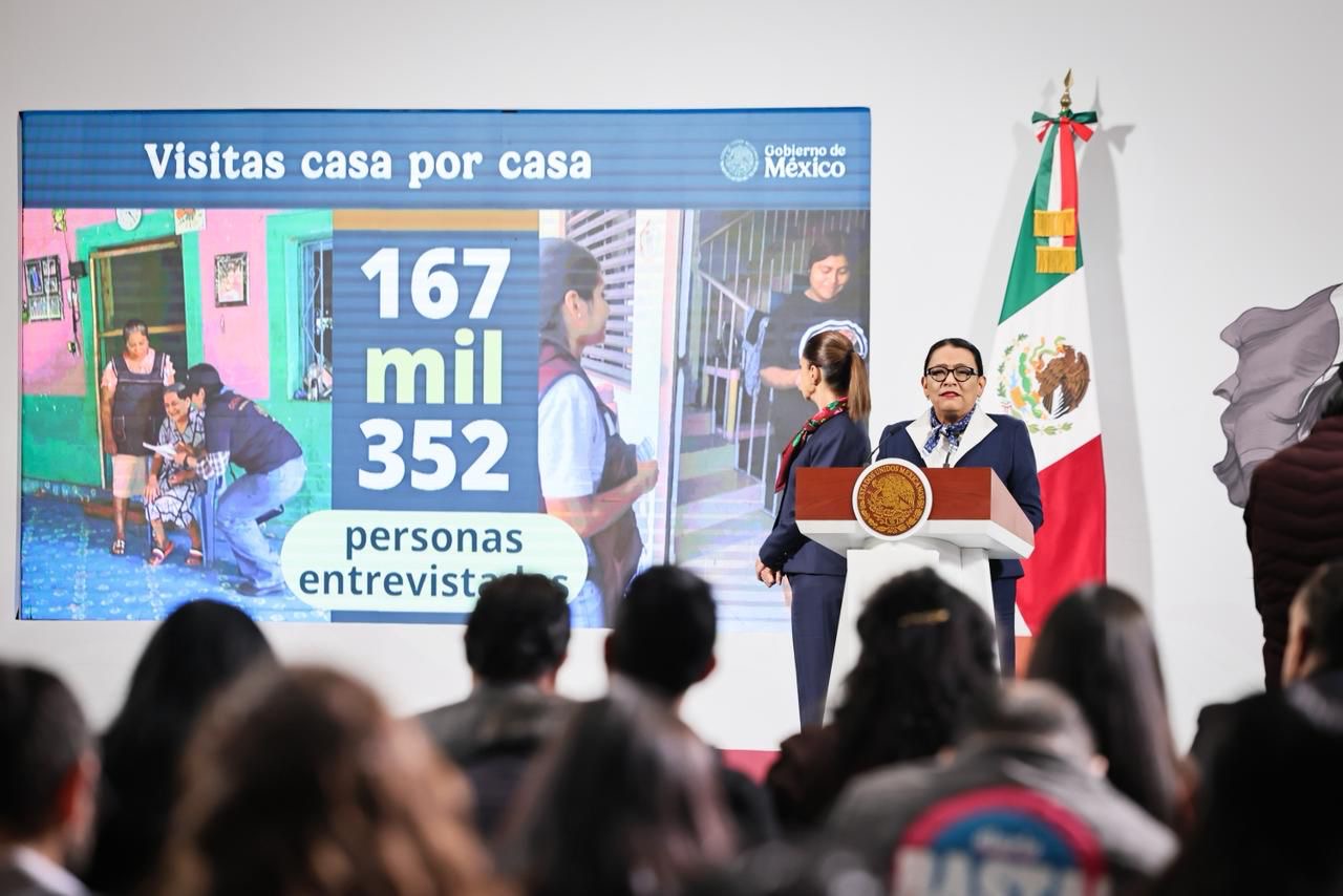 La secretaria Rodríguez refirió que para saber las necesidades de las familias, de sus integrantes y la comunidad, personal del Gobierno federal continúa con las visitas casa por casa. A la fecha se ha llegado a más de 167 mil 300 personas.