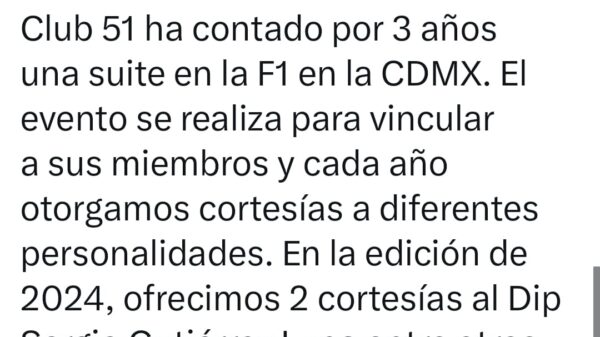 El Club 51, con sede en la Torre Mayor de la Ciudad de México, informó que en la Fórmula 1 de 2024...