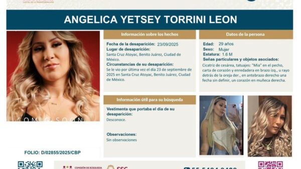La Fiscalía General de Justicia capitalina, emitió una ficha de búsqueda para localizar a la venezolana Angélica Yetsei Torrani León, amiga del...