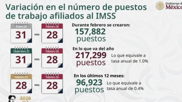 La presidenta Claudia Sheinbaum Pardo informó que durante febrero se crearon 157 mil 882 empleos formales, cifra que calificó como “un muy buen...