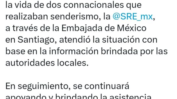 La Embajada de México en Chile informó que brinda asistencia consular tras el fallecimiento de dos connacionales durante una ventisca en el Parque...