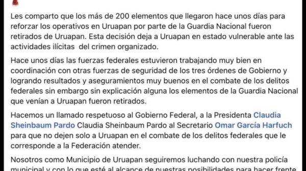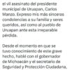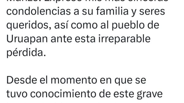 La presidenta de México, Claudia Sheinbaum Pardo, condenó “con absoluta firmeza el vil asesinato” del presidente municipal de Uruapan, Carlos Manzo, ocurrido...