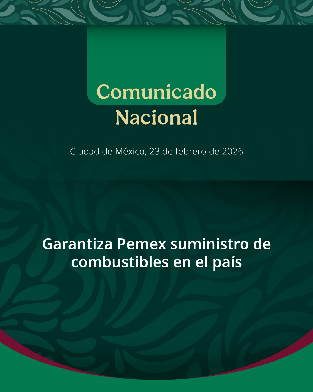 En un comunicado emitido este 23 de febrero, la petrolera señaló que mantiene vigilancia constante para asegurar la integridad física de sus instalaciones y de las y los trabajadores, con el propósito de salvaguardar la operación de su infraestructura crítica.