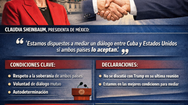 La presidenta Claudia Sheinbaum Pardo afirmó que México está dispuesto a fungir como mediador para facilitar un diálogo entre Cuba y Estados Unidos,...